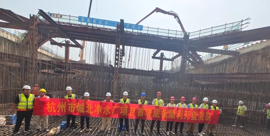 中建八局杭州市城北净水厂项目首块筏板顺畅完结混凝土浇筑